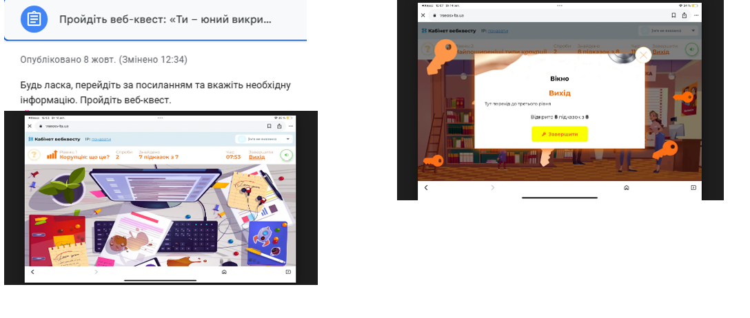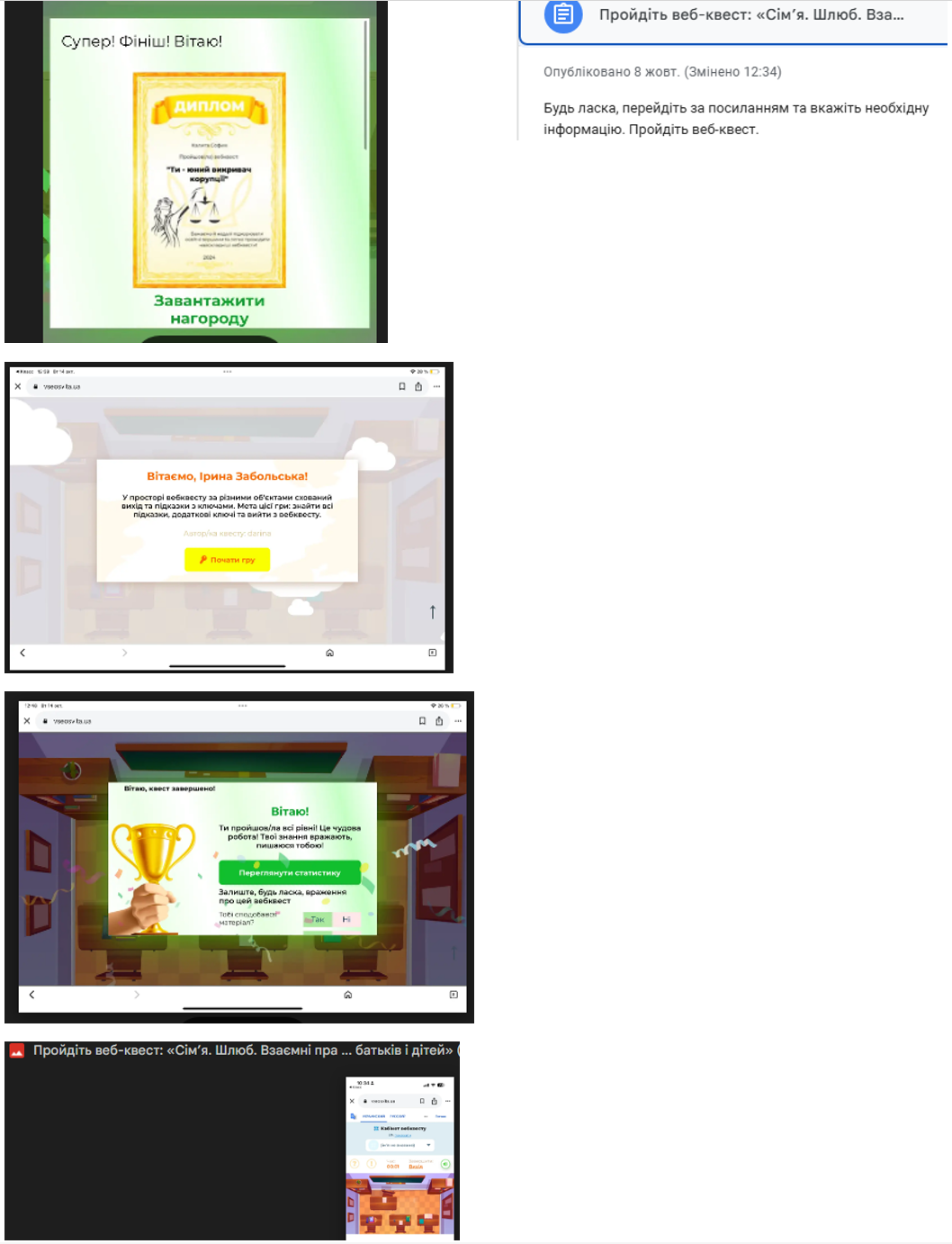 08 жовтня 2025 року студенти групи 4КП-049 проходили веб-квести: «Сім’я. Шлюб. Взаємні права та обов’язки батьків і дітей», «Ти – юний викривач корупції!».